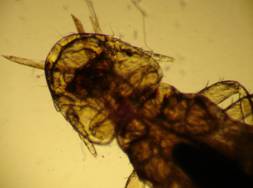Foto 2.: Observar ao lado da haste central das penas milhares de ovos de piolho Malófago de Calopsita.